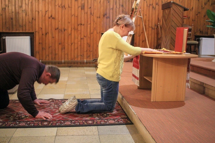 У Страсну П’ятницю в каплиці Дому паломника на Горі Святої Анни на вечірньому богослужінні зібралися біля тридцяти українських біженців, які там перебувають.