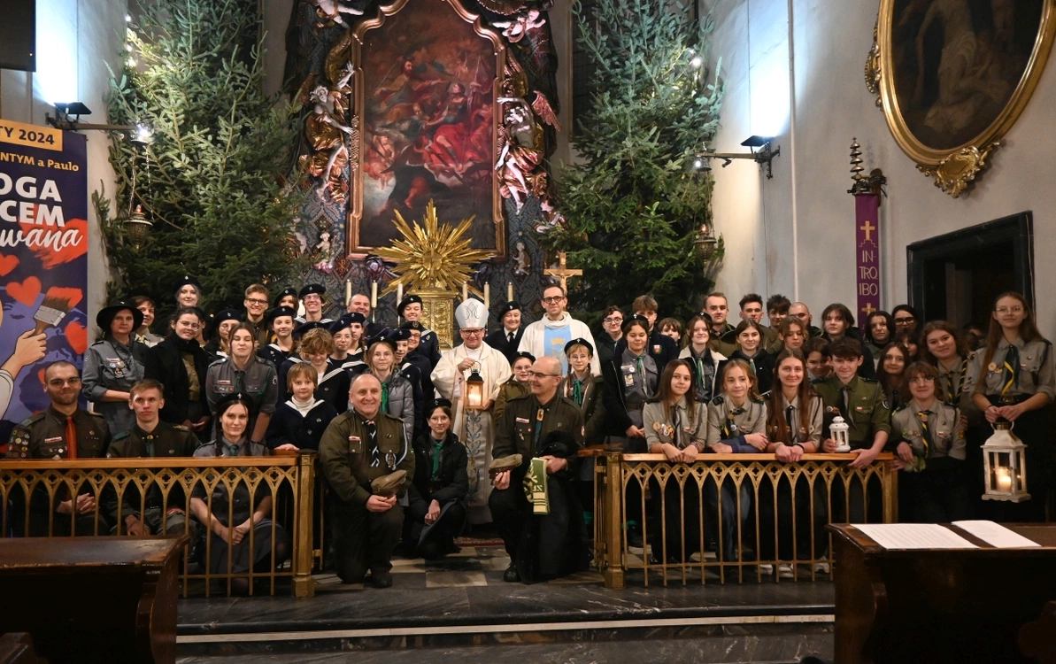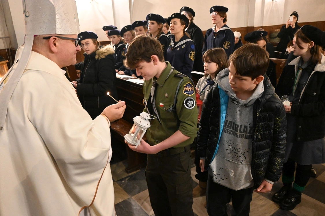 Zwykle sztafeta wyruszała z Groty Narodzenia Pańskiego Betlejem, skąd skauci austriaccy przywozili zapalony płomień i przekazywali druhom z innych krajów. Tym razem było inaczej. - W tym roku Światło Betlejemskie nie przybyło z Betlejem, ale rozpoczęło swoją podróż po świecie z Christkindl w Górnej Austrii, partnerskiego miasta Betlejem, ponieważ niemożliwe było przetransportowanie płomienia bezpośrednio z Groty Narodzenia Jezusa w Betlejem z powodu trwającej tam wojny. Światło, zapalone w Grocie Narodzenia w 2023 r., było przechowywane przez austriackich skautów cały rok, aż do teraz. Z tym większym wzruszeniem spoglądamy dziś na to światło jako symbol braterstwa, jedności i pokoju, którego świat tak bardzo potrzebuje - mówił w homilii bp Musioł.