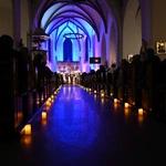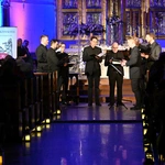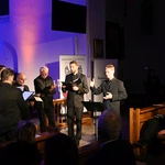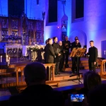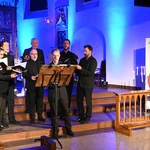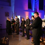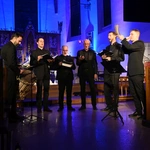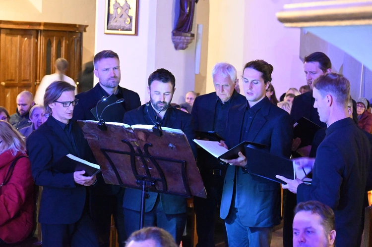 I tak, w średniowiecznej, XIII-wiecznej kozielskiej świątyni wybrzmiała Bogurodzica - najpierw w surowym jednogłosie, potem w bogatej i ciekawej interpretacji. Dalej śpiewy Litanii do Wszystkich Świętych, hymny, antyfony i psalmy, wreszcie pieśń czeska "Svatý Václave". Męskie głosy wspierały dźwięki bębna i rogów, zaś artyści wykonywali kolejne utwory nie tylko od ołtarza, ale w różnych zakątkach świątyni, wykorzystując jej świetną akustykę i uzyskując wyjątkowe brzmienie. Słuchaniu, zadumie sprzyjało też klimatyczne oświetlenie.