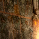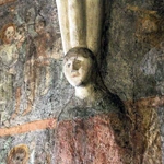 Wystarczy wejść do kościoła (przez cały dzień jest otwarty, zabezpieczony alarmami i monitoringiem) i po przejściu przedsionka popatrzeć w prawo. Dawne prezbiterium, dziś kaplica boczna z obrazem Miłosierdzia Bożego. Na ścianie północnej widać wielką płaszczyznę fresków i gotyckie żebrowania sklepienia zakończone figuralnymi wspornikami. Na ich twarzach akurat odbywa się gra świateł - o ile wejdziecie do kościoła na jakieś dwie godziny przed zachodem słońca, tak jak ja dzisiaj.