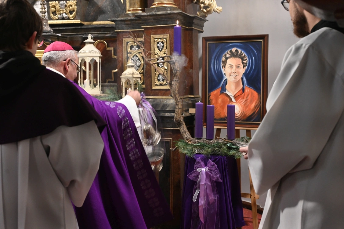 Podczas nieszporów biskup poświęcił wieńce adwentowe i zapalił pierwszą świecę.