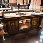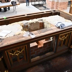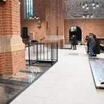 Wczoraj odbył się odbiór całości wykonanych prac w katedrze opolskiej. Teraz jeszcze jest kilka dni na ostatnie szlify przed ponownym otwarciem świątyni. Montowane są pięknie odrestaurowane ławki, a także dobrze nam znana drewniana obudowa wokół nowo wybudowanego kamiennego ołtarza. Gotowe są ekspozycje odkrytych murów XIII-wiecznej świątyni, gotowe jest też zejście do wyremontowanej i odnowionej krypty, w której spoczywa bp Franciszek Jop. W piątek planowany jest odbiór nowego ogrzewania. Będzie to system gazowy, nadmuchowy. W posadzce zamontowane zostały 22 wyloty ciepłego powietrza.
