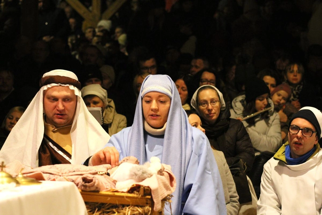 Zobaczyliby stodołę, w której około tysiąca ludzi siedzi na stopniach prowizorycznego amfiteatru wyścielonych słomą. W centrum stodoły – na podwyższeniu stół nakryty białym obrusem. Nad nim grupa dzieci i młodzieży ubrana na biało z gwiazdkami na czołach. Poniżej stołu mini-zagroda z osiołkiem, kucykiem, trzema kozami i dwoma owcami. Gaśnie światło. Ludzie zaczynają śpiewać pieśń rozpoczynającą się od słów „Wśród nocnej ciszy…”. Do stodoły wchodzi ubrany w brązową suknię mężczyzna niosący latarenkę, którą oświetla drogę. Za nim ubrana w błękitną suknię kobieta niosąca zawinięte w ciepłe ubranie niemowlę. Siadają przy stole, kobieta układa dziecko w żłóbku. Za nimi wchodzą trzej pasterze ubrani na brązowo-żółto z kijami pasterskimi w rękach. Rozpoczyna się misterium, w którym powtarzają się mówione i śpiewane słowa: „Jezus”, „Bóg”, „Nowonarodzony”. Twarze ludzi zamyślone, niektóre rozświetlone, zachwycone, inne uśmiechnięte, wpatrujące się w środek stodoły. Co by pomyśleli ci, którzy widzą takie zjawisko po raz pierwszy?