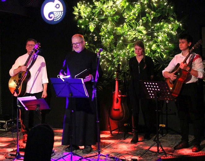 Darek Czarny, znany gitarzysta, wokalista i poeta, lider zespołu „U studni” (dawniej członek słynnego zespołu „Stare Dobre Małżeństwo” nadawał się na ten koncert jak mało kto. Nie dlatego, że pochodzi z Kędzierzyna-Koźla. Ale przede wszystkim dlatego, że jego twórczość dotyka spraw najważniejszych, głębokich, bosko-ludzkich. Jest chrześcijaninem, który otwarcie - choć w sposób subtelny, nie agresywny czy konfrontujący - mówi o swojej wierze.- Bardzo się cieszę, że jest was tutaj tak wielu. Cieszę się, że nie jest nam obojętny ten ważny element życia jakim jest towarzyszenie naszym bliskim i przyjaciołom w przechodzeniu na drugą stronę - mówił muzyk ze sceny.