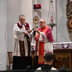 W procesji wejścia proboszcz ks. Waldemar Klinger wniósł relikwie Krzyża Świętego, które ustawił na ołtarzu, i którymi po Drodze Krzyżowej biskup udzielił zebranym błogosławieństwa.