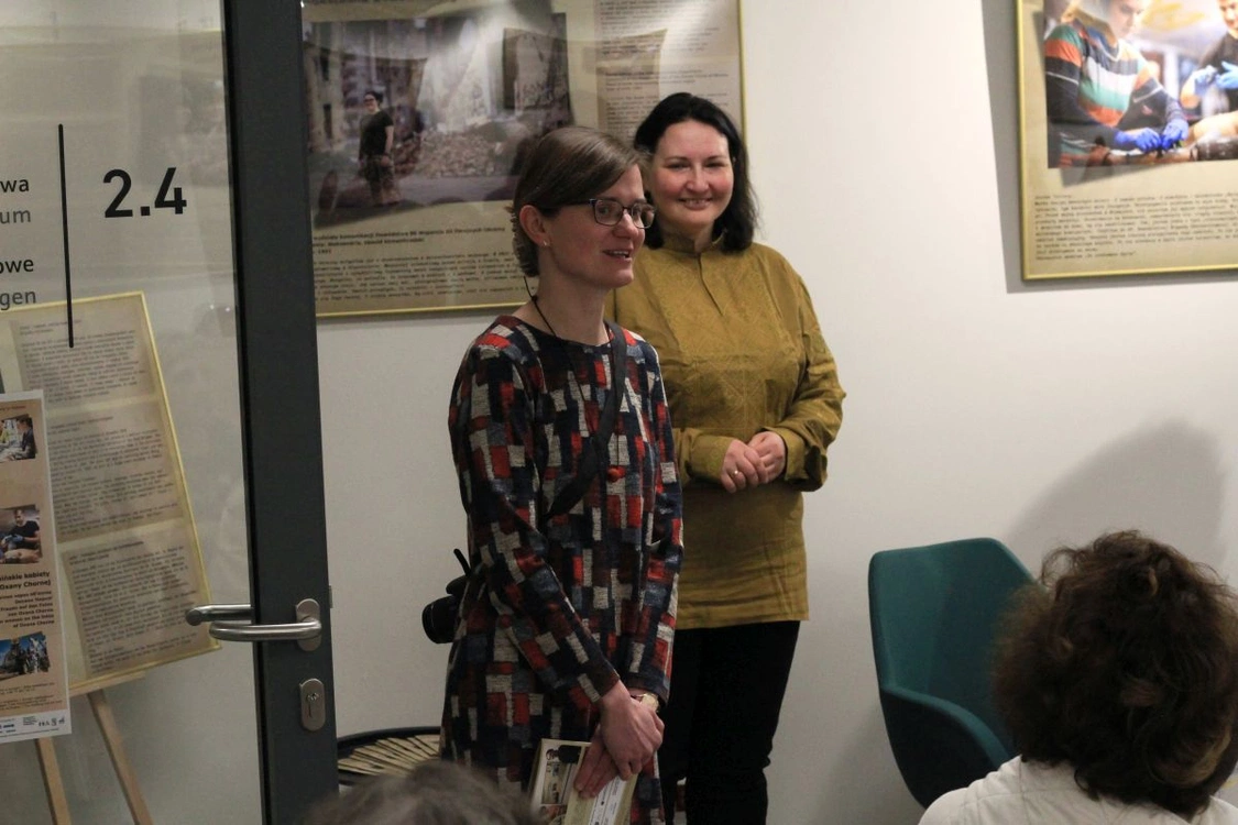7.03.25, Opole. W Centrum Dokumentacyjno-Wystawienniczym Niemców w Polsce - oddziale Wojewódzkiej Biblioteki Publicznej w Opolu - do końca kwietnia można oglądać wystawę pt. "Walczą, leczą, ratują. Ukraińskie kobiety w obiektywie Oxany Chornej". Dzisiaj w centrum odbyło się spotkanie z autorką zdjęć - profesorką ekonomii, a obecnie szefową Wydziału Komunikacji 23 Samodzielnej Brygady Zmechanizowanej Sił Zbrojnych Ukrainy - por. Oxaną Chorną.
