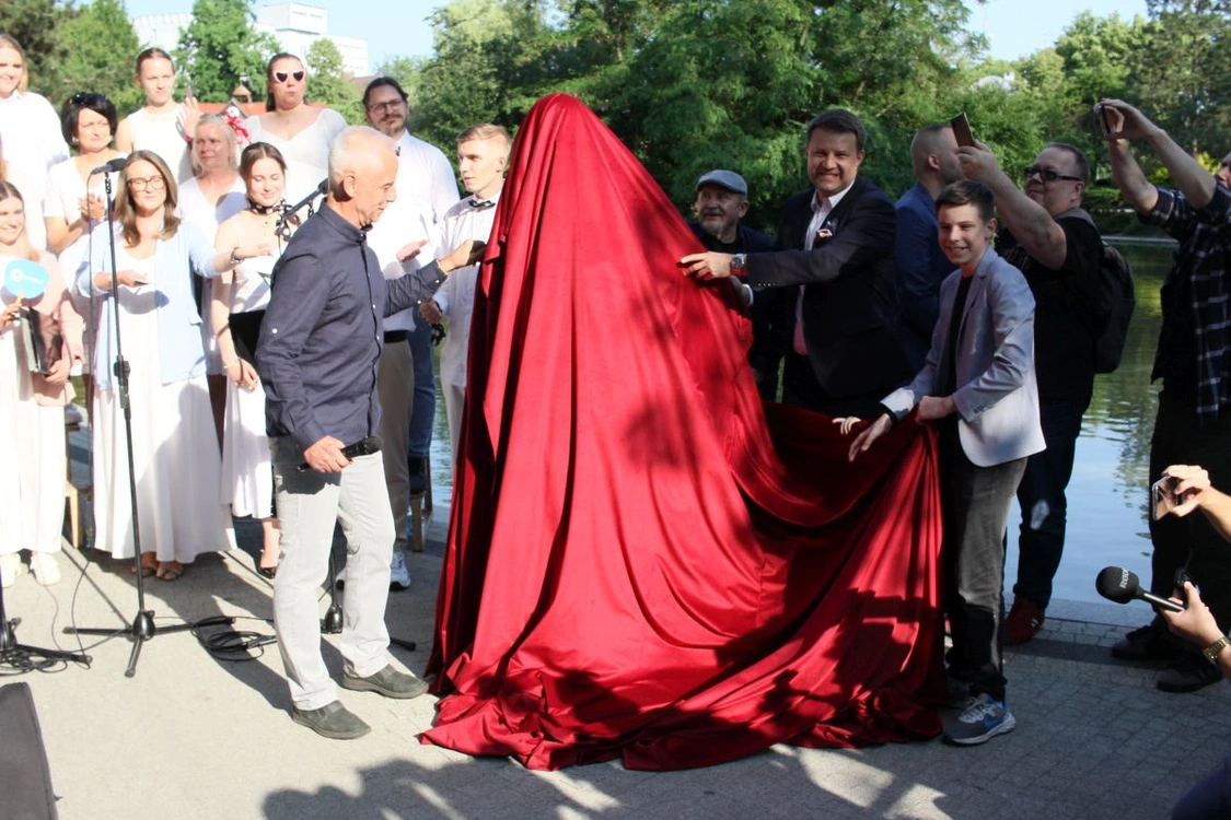 12.06.25, Opole. Przed rozpoczęciem 62. Krajowego Festiwalu Piosenki Polskiej w Opolu nad Stawkiem Zamkowym w sąsiedztwie opolskiego amfiteatru odsłonięta została rzeźba Ewy Demarczyk, zwyciężczyni pierwszego festiwalu w roku 1963, wybitnej polskiej pieśniarki. Twórcą rzeźby jest prof. Marian Molenda.