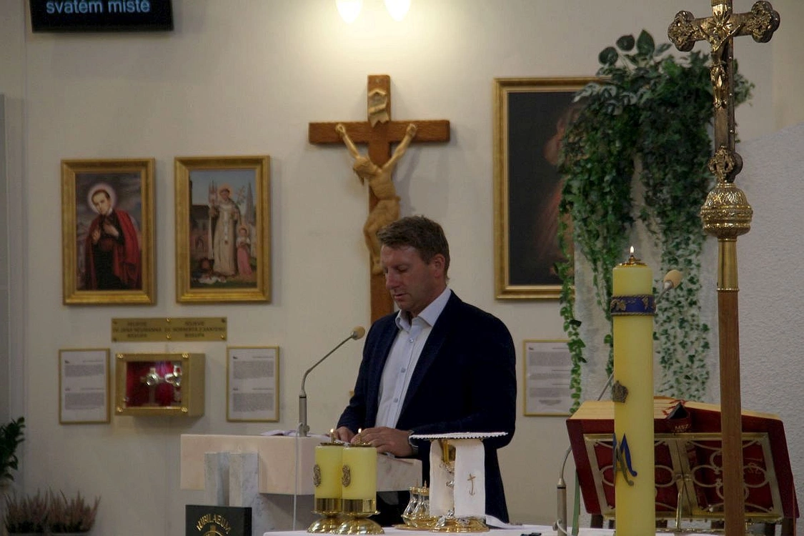 31.08.25, Zlate Hory. W pierwszą rocznicę śmierci długoletniego współredaktora "Gościa Opolskiego" ks. Tomasza Horaka w sanktuarium Maria Hilf k. Zlatych Hor odprawiona została Msza św. w jego intencji ofiarowana przez byłych ministrantów i ministrantki. Mszy św. przewodniczył kustosz sanktuarium ks. Mariusz Jończyk.